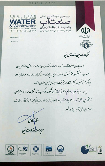 Achieving the Title of “The Best Company” In 13th International Exhibition of Water and Wastewater